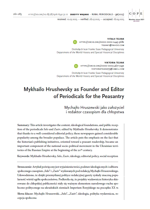 // Zeszyty Wiejskie / Rural Periodicals. – Łódź : Uniwersytet Łódzki, 2025. – Т. 31. – С. 261–283. |  Бібліотека