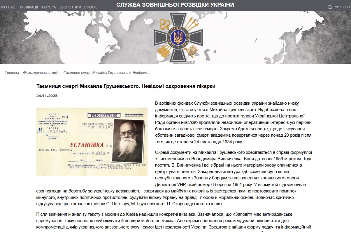 // Служба зовнішньої розвідки України : [Електронний ресурс]. – 2025. – 24 листопада. |  Бібліотека