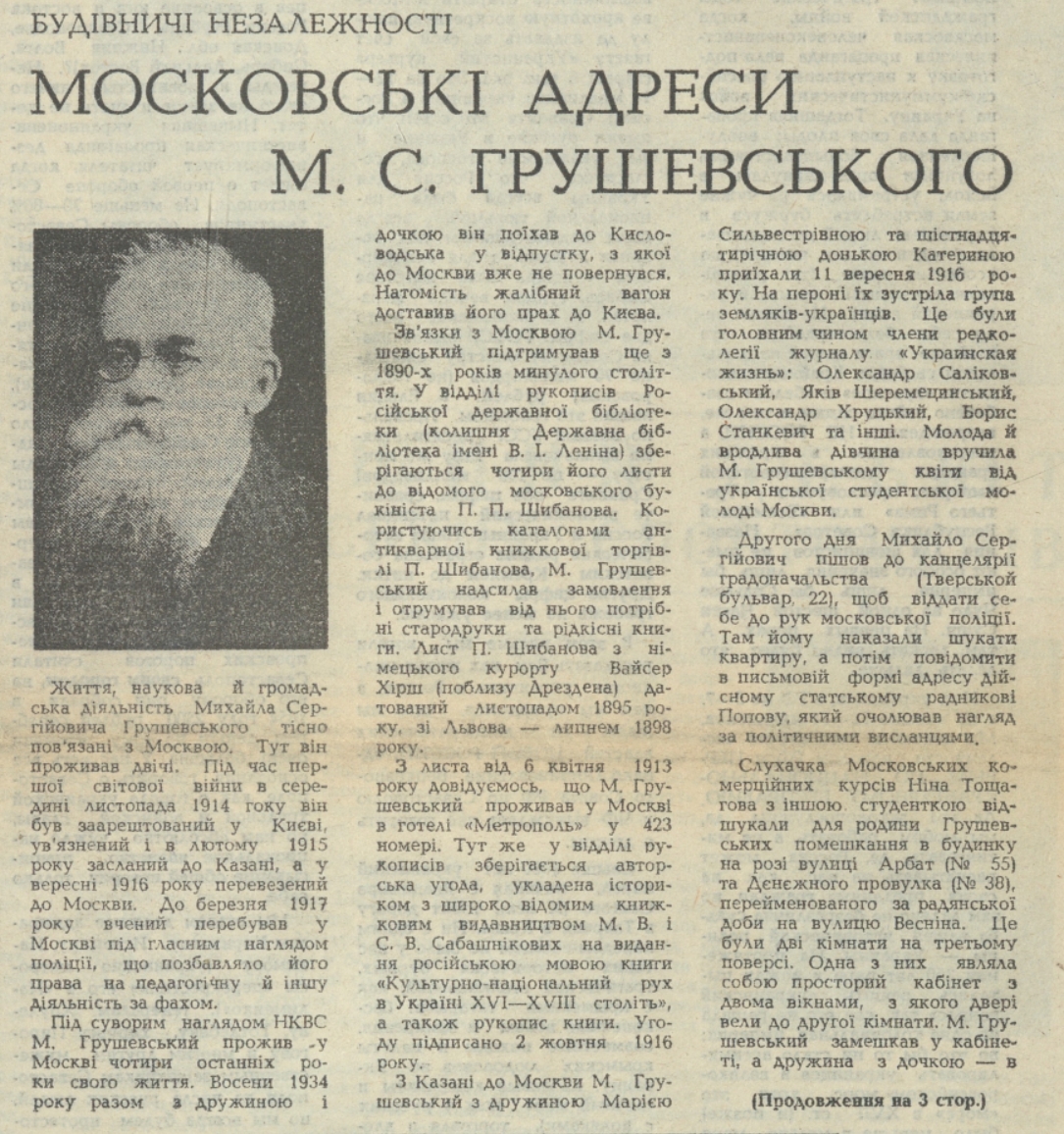 | 2. |  | Забочень М. Московські адреси М. С. Грушевського