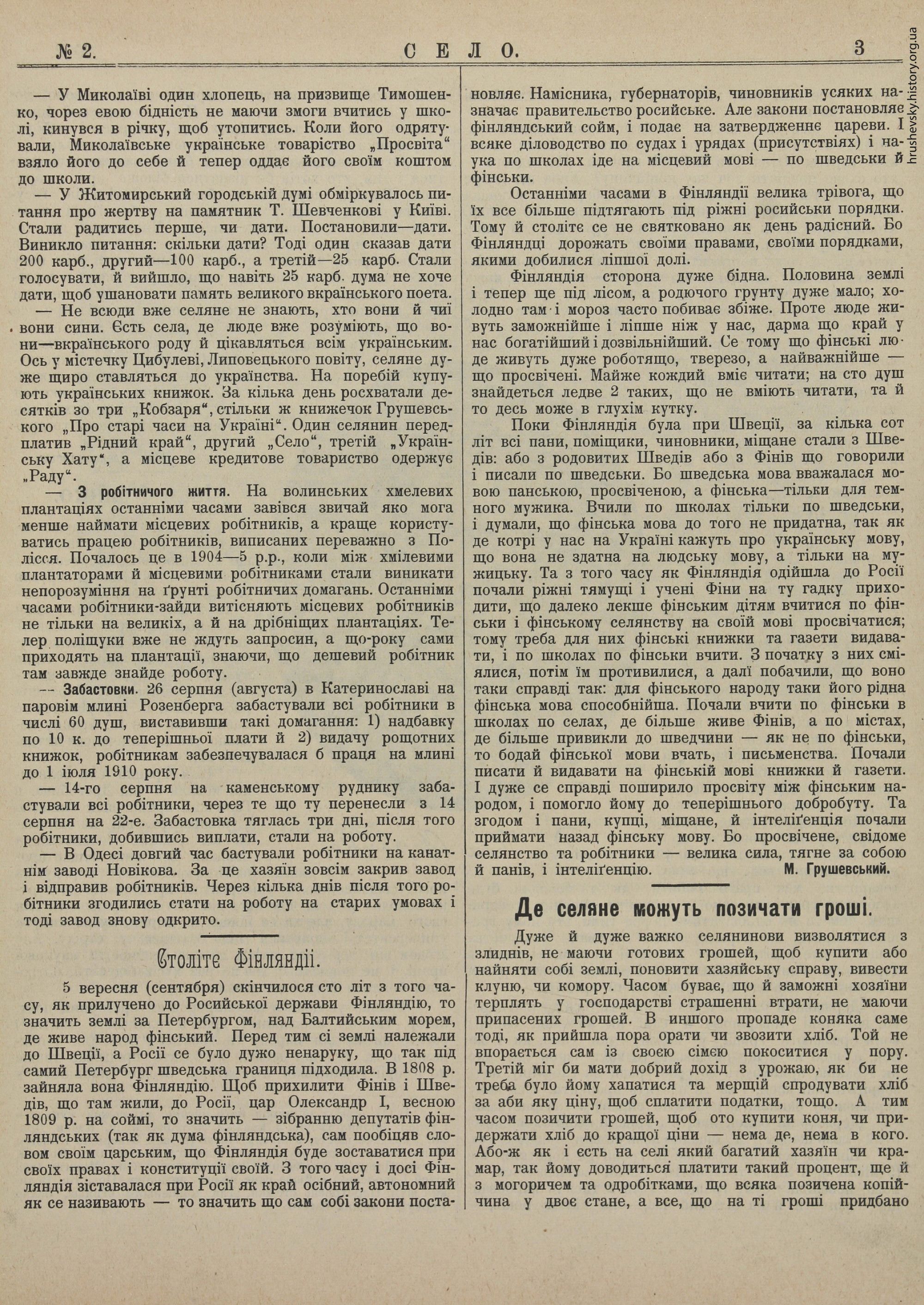 | 2. |  | Грушевський М. // Село : українська народна елюстрована газета для селян і робітників. - Київ, 1909. - № 02. - С. 3 |  Бібліотека  |