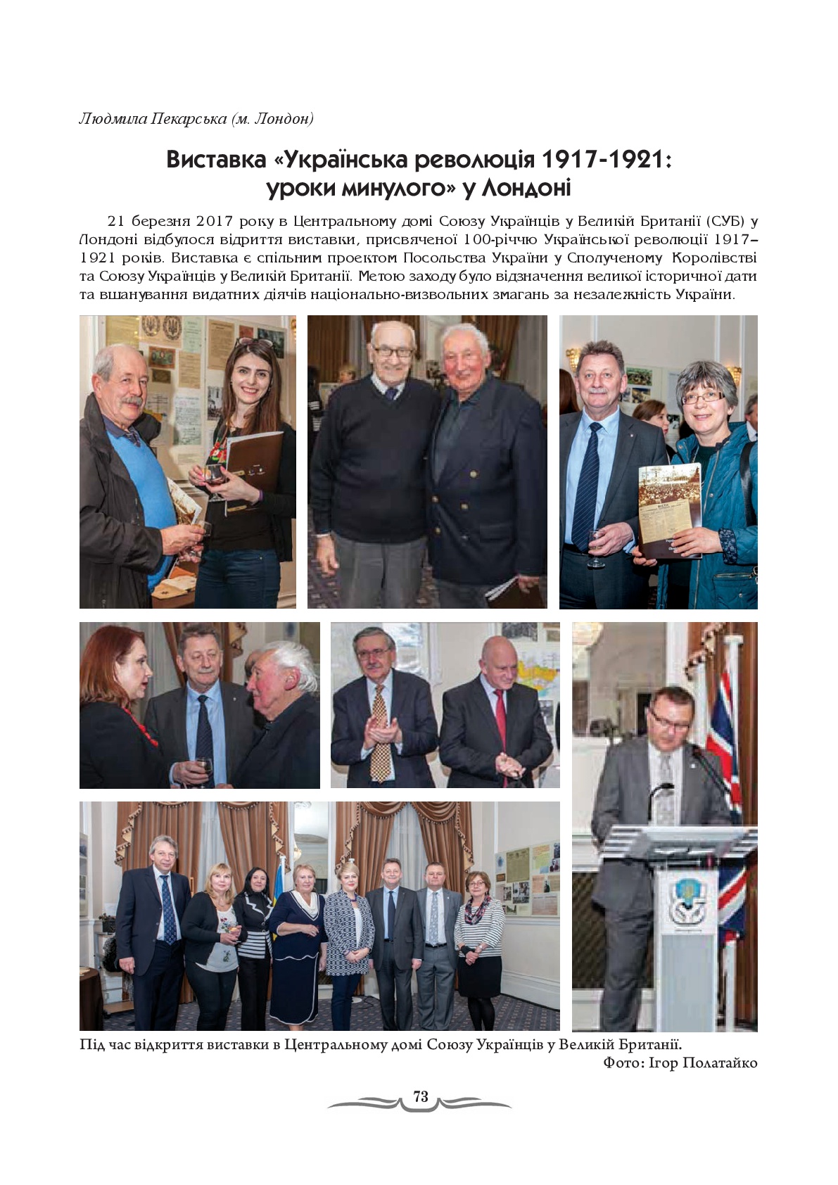 | 7. |  | Пекарська Л. Виставка "Українська революція 1917-1921: уроки минулого" у Лондоні // Краєзнавство: Науковий журнал. - Київ, 2017. - № 1/2. - С. 73-79 |  Бібліотека  |