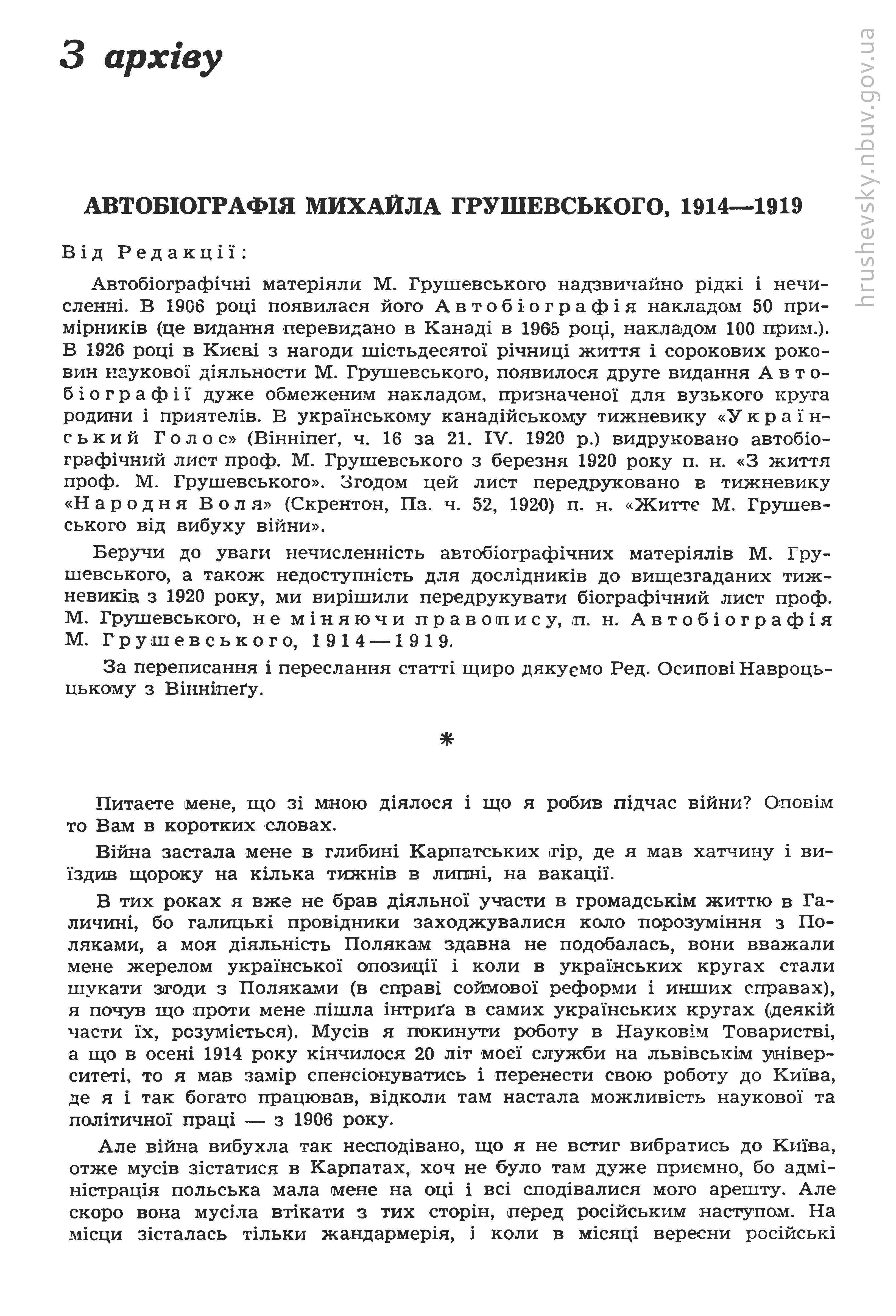 |  Бібліотека  | | 9. |  | "Грушевский сделал огромное дело для возрождения украинского народа...": Из дневника В. И. Вернадского. 1934 г. // Исторический архив. - Москва, 1997. - № 4. - С. 200–205 |  Бібліотека